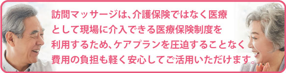 訪問医療マッサージは「医師の同意」のもとに、在宅で療養中の方を対象としたマッサージです。